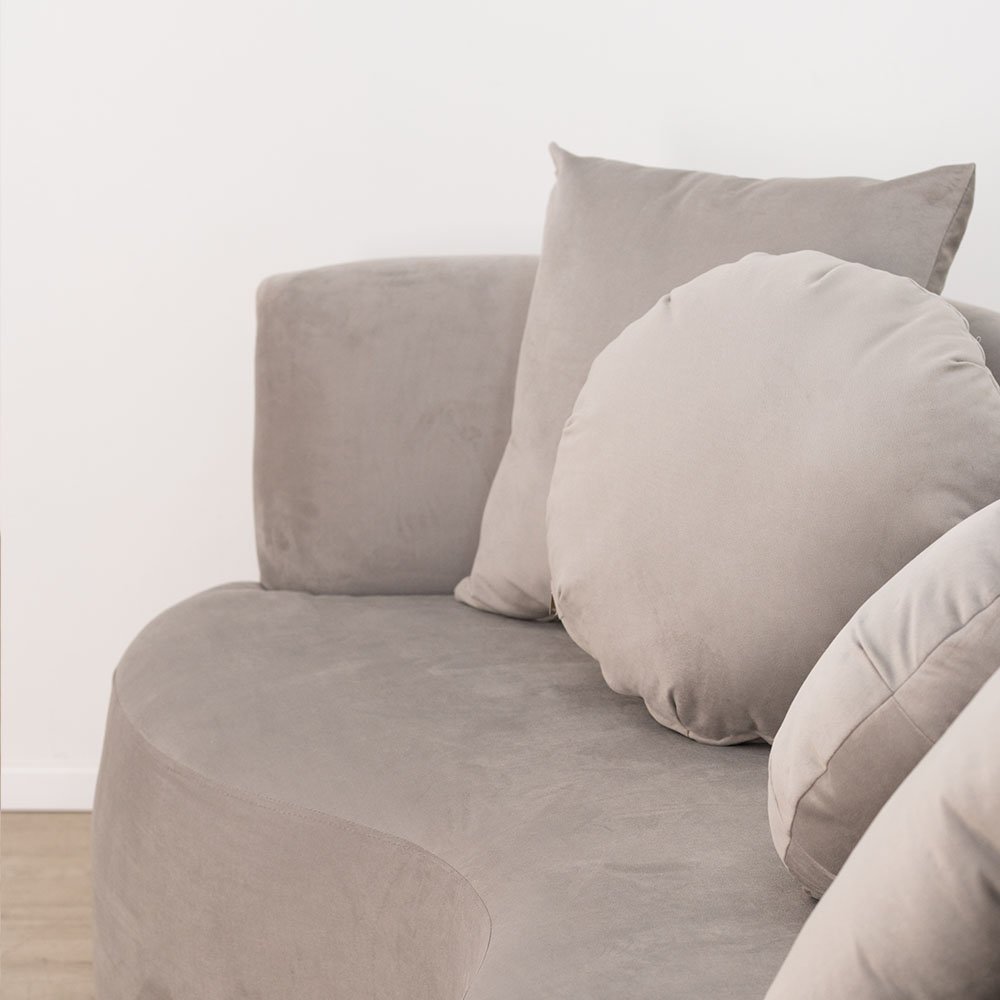 Un sofá envolvente. Con formas curvas y redondeadas busca convertirse en protagonistas del espacio.