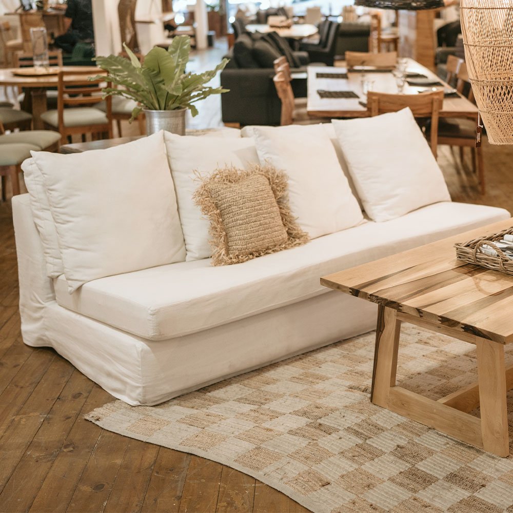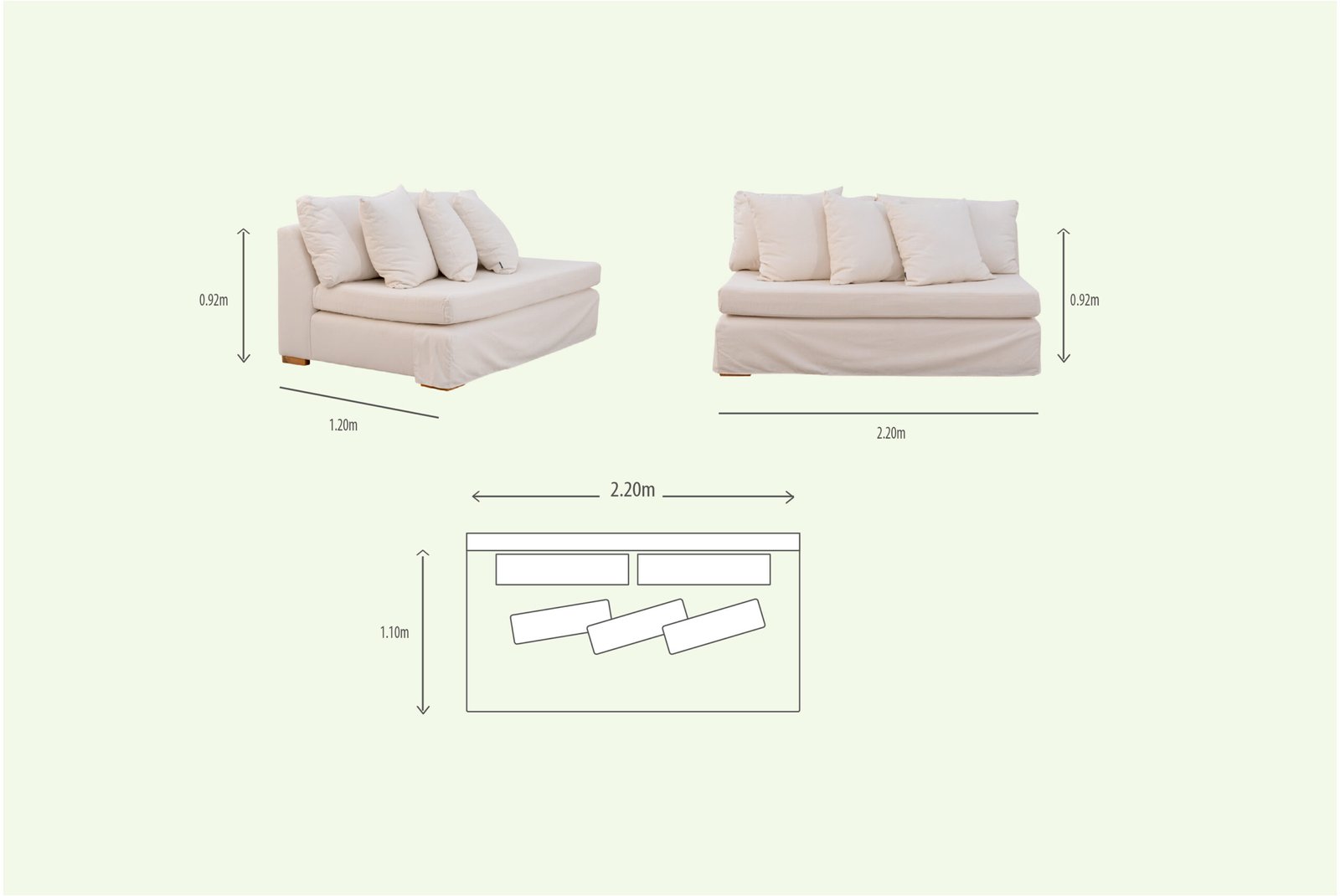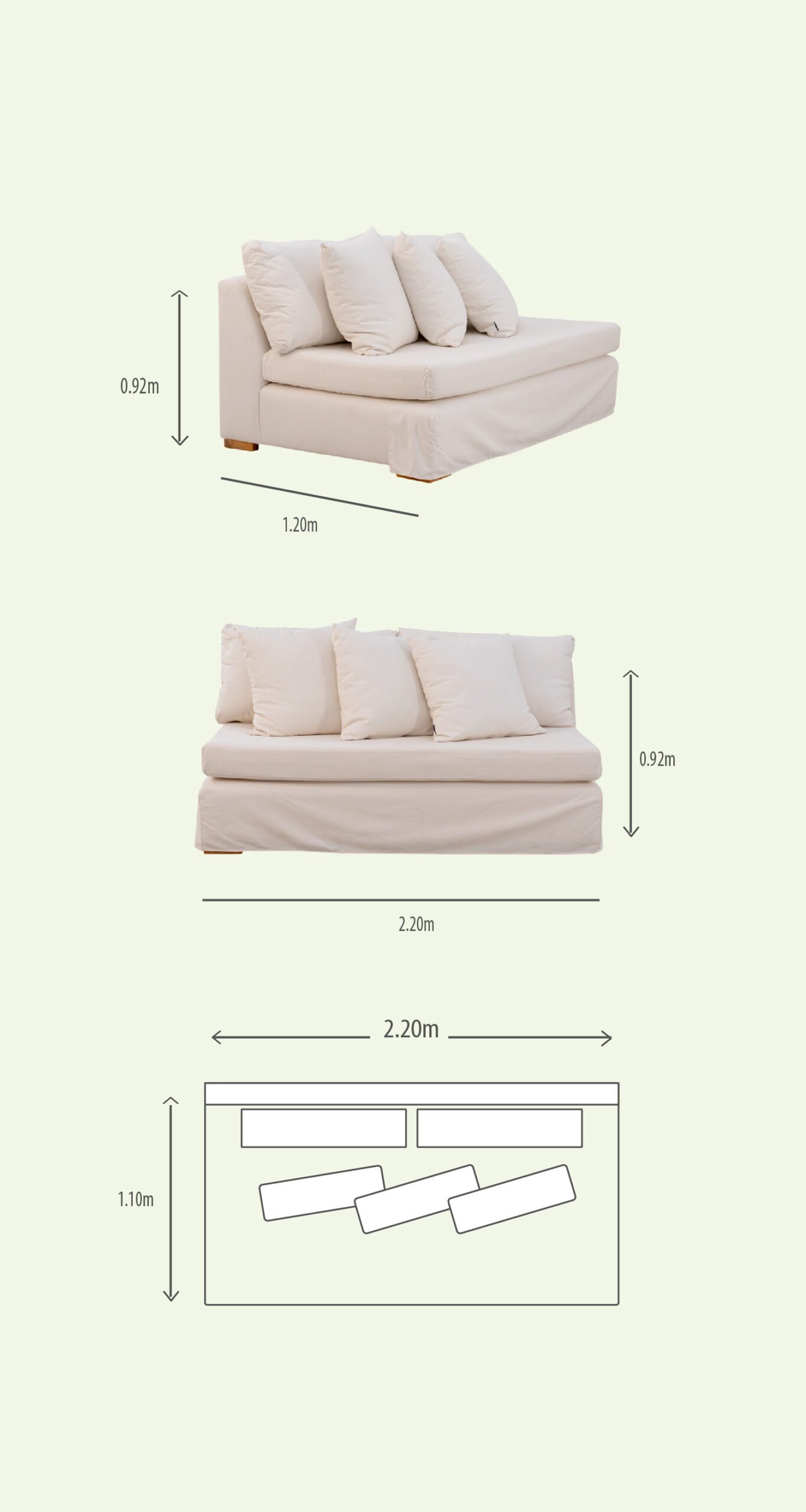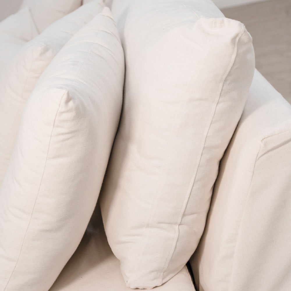 Posee almohadones con fundas desmontables, garantizando su práctico mantenimiento.